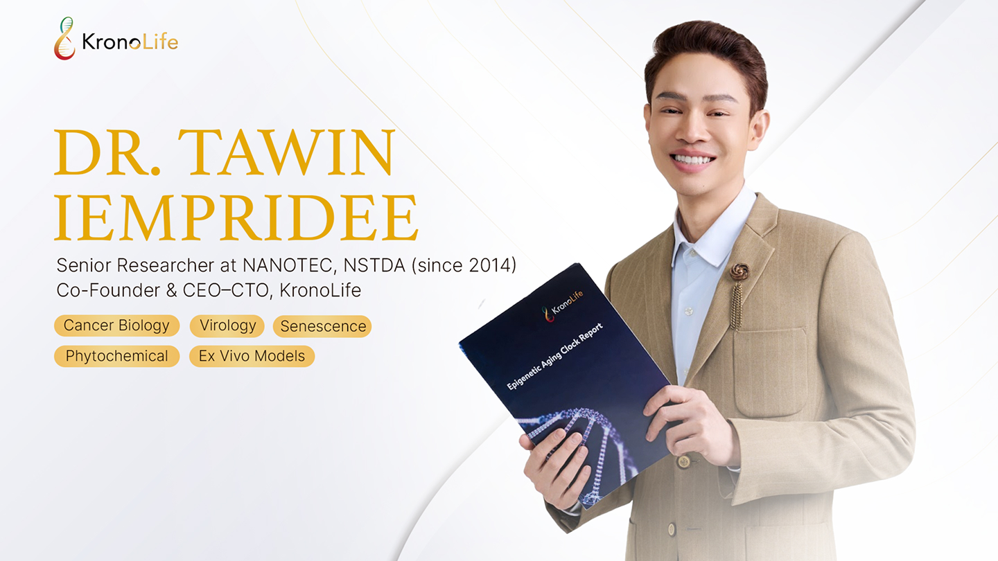 ทำงานวิจัยด้านชีววิทยาความชราและมะเร็ง (Aging–Cancer Biology) และมีประสบการณ์พัฒนา longevity actives พร้อมแพลตฟอร์มทดสอบประสิทธิภาพ–ความปลอดภัยที่ตรวจสอบได้ โดยใช้แบบจำลองผิวหนังมนุษย์ขั้นสูง เช่น 3D skin models และ ex vivo เพื่อเชื่อม “กลไกทางวิทยาศาสตร์” สู่การพัฒนาผลิตภัณฑ์ที่ใช้งานจริง